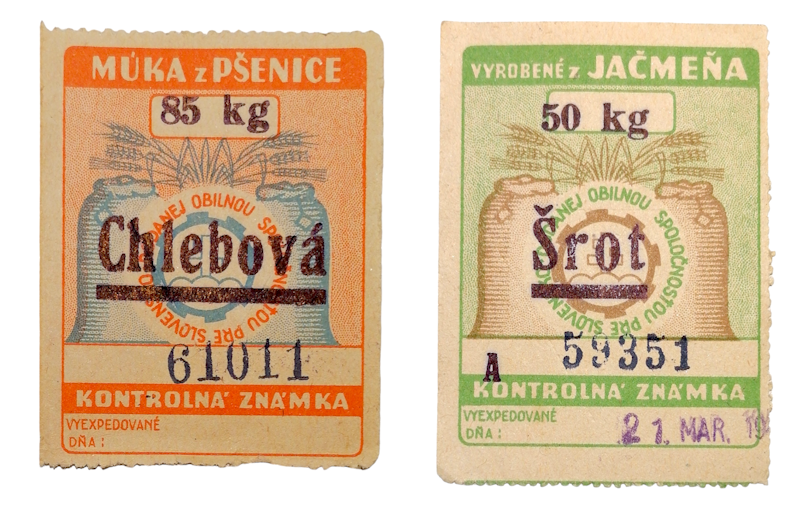 Táto spoločnosť vydávala aj kontrolné známky pre svoje jednotlivé produkty. Tieto produkty sa vyrábali v mlynoch a boli obchodované vo vreciach. Každý mlyn mal povinnosť uzavrieť vrece pevným povrazom, cez ktorý najprv prevliekol štítok s informáciami o mlyne. Následne obidva konce povrazu boli krížom prevlieknuté cez otvory v podkladovom kartóne a zviazané. Na prednú stranu kartónu sa cez povrazy prelepila kontrolná známka. Nakoniec medzi štítok a kartón bola umiestnená kovová plomba s informáciami o danom mlyne.